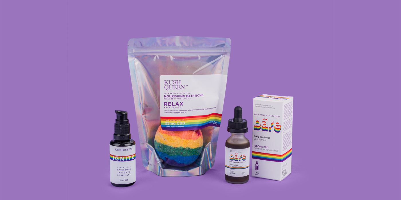 Celebrating the shared history of cannabis progress, and the LGBTQ+communities, Kush Queen presents our limited edition 2019 Pride Collection. The Pride CBD bath bomb with 25mg CBD, Pride Ignite Water Based CBD Lubricant, and our 1000mg Bare CBD Tincture.